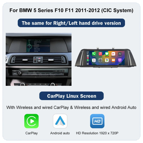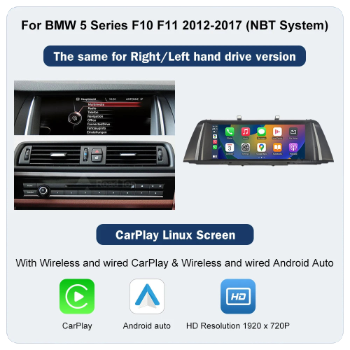 Introducing the 10.25' Multimedia Display for BMW 5 Series F10 F11 (2011-2017), a game-changer for your driving experience. With a stunning resolution of 1920*720, this touch screen display seamlessly integrates with your vehicle, offering both Wireless Carplay and Android Auto capabilities.