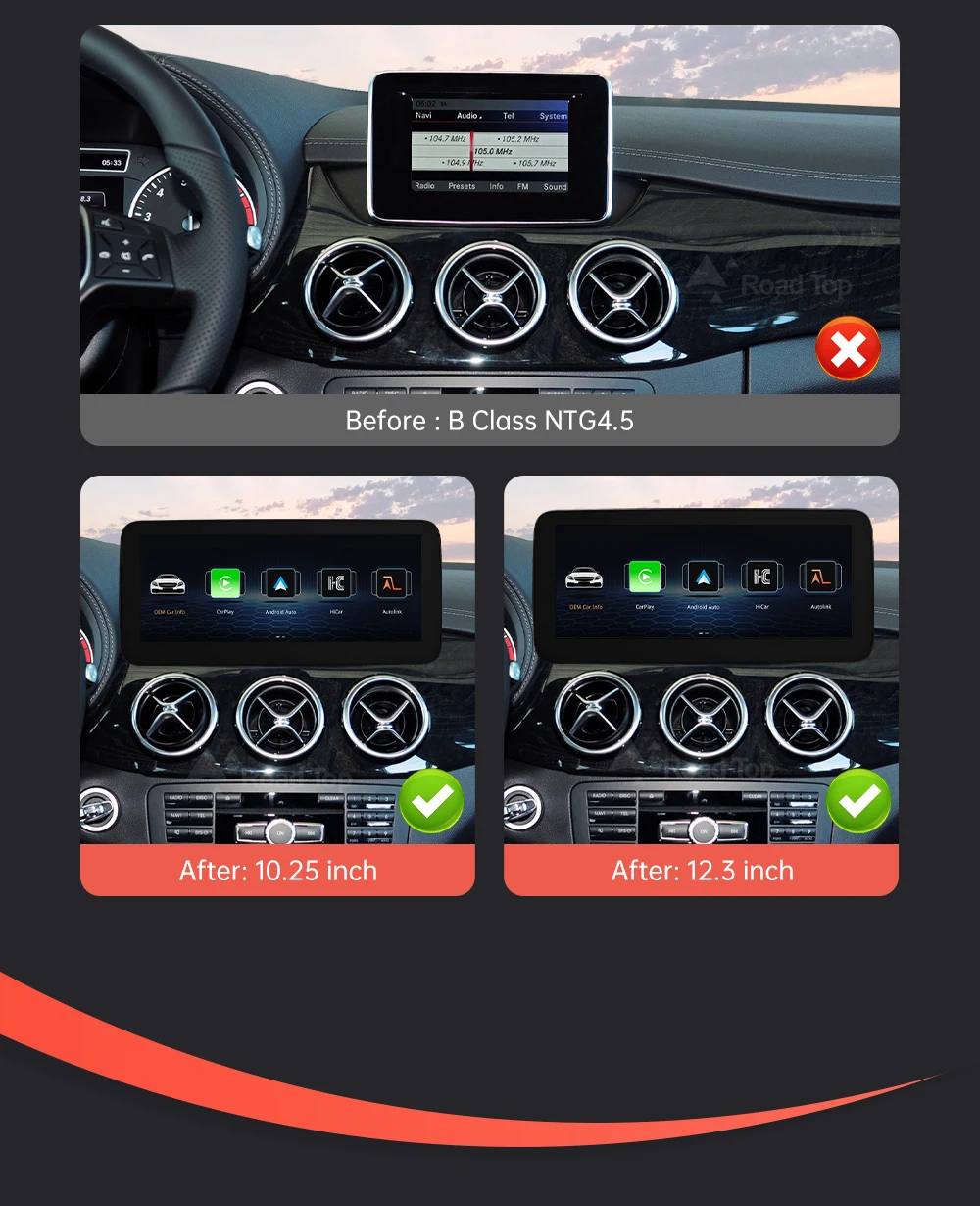 Introducing the 1920*720 Touch Screen Car Multimedia Display, a revolutionary upgrade for your Benz A, B, CLA, GLA models from 2013-2015. This unique multimedia system seamlessly integrates with your vehicle, offering both Wireless CarPlay and Android Auto capabilities.