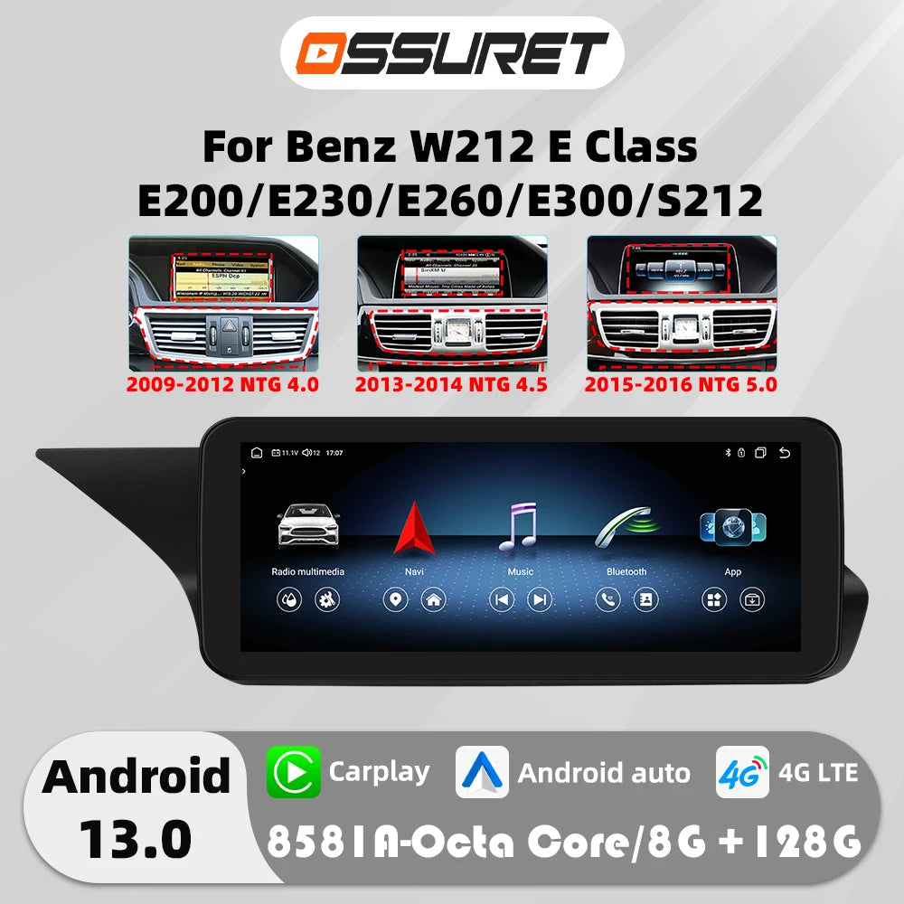 4G Carplay Android 13 Auto Car radio For Mercedes Benz W212 E-Class NTG 4.0 4.5 5.0 E200 E230 E260 E300 S212 Multimedia player