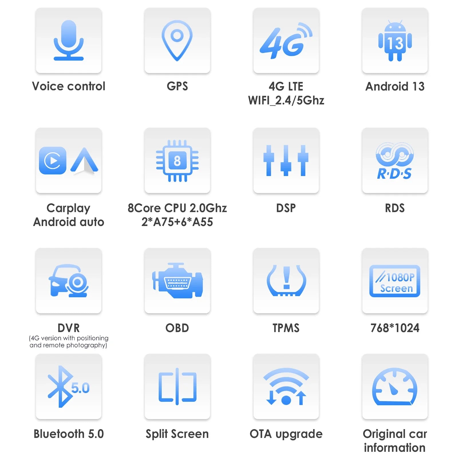 With a stunning 9.7-inch touchscreen, this multimedia video player offers seamless integration with both Android Auto and Carplay, allowing for effortless connectivity. The built-in GPS and 4G capabilities ensure you stay connected and navigate with ease.