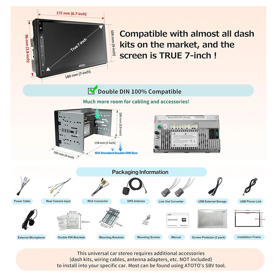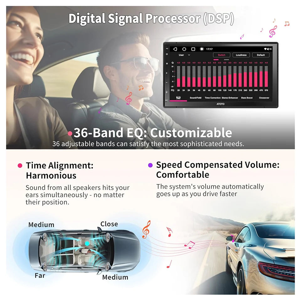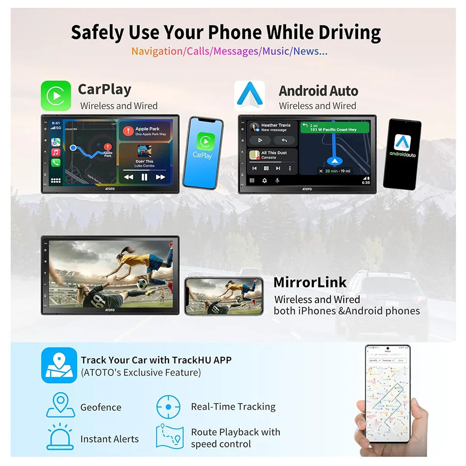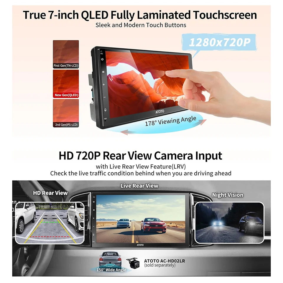 The ATOTO 7 inch Android Car Stereo A6 PP stands out with its powerful 8-core processor and 4GB RAM, ensuring seamless performance and responsiveness. This double din unit is designed for modern drivers, integrating Bluetooth, GPS, Apple CarPlay, and Android Auto for a truly connected experience.