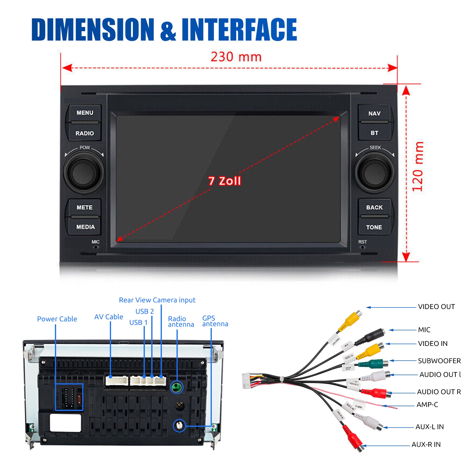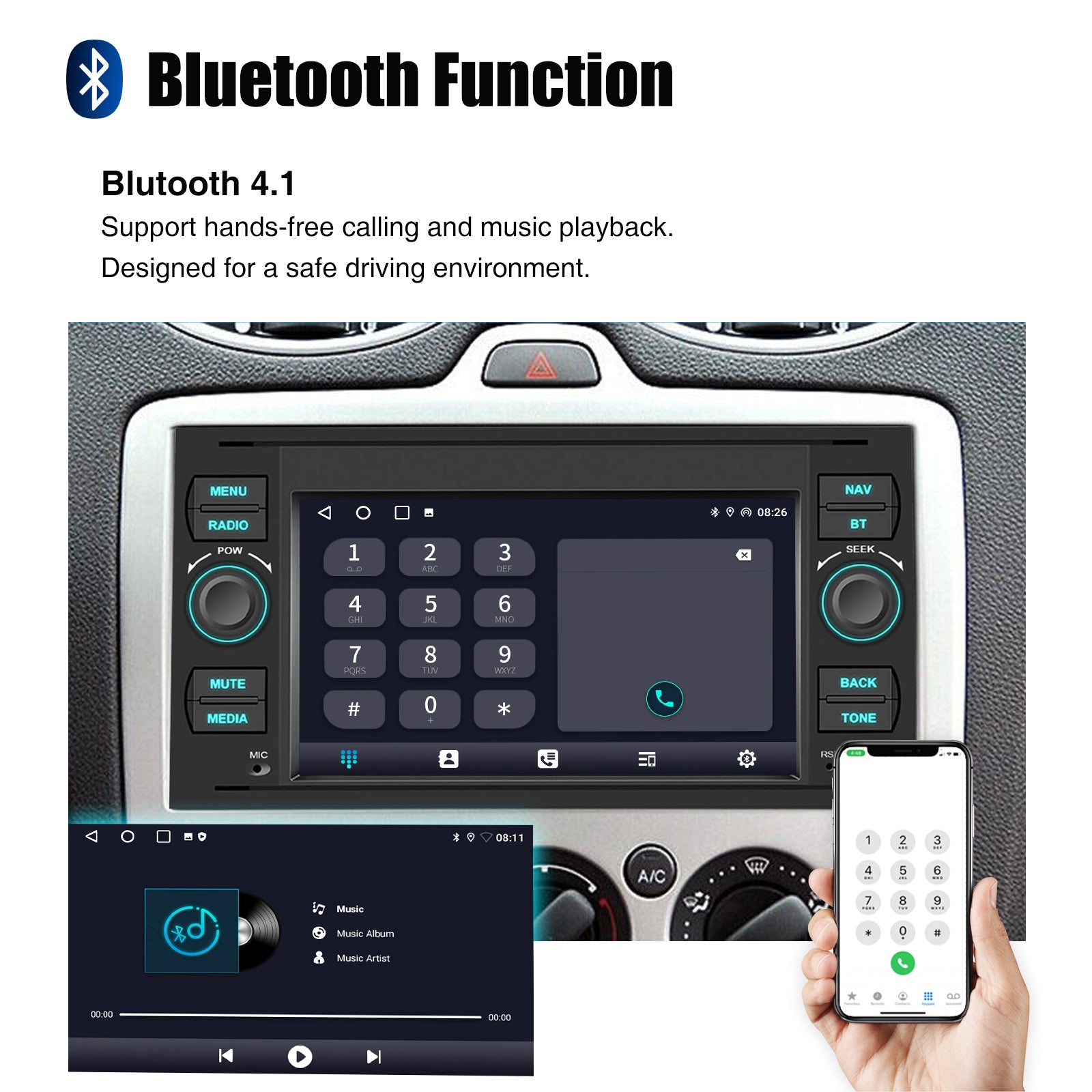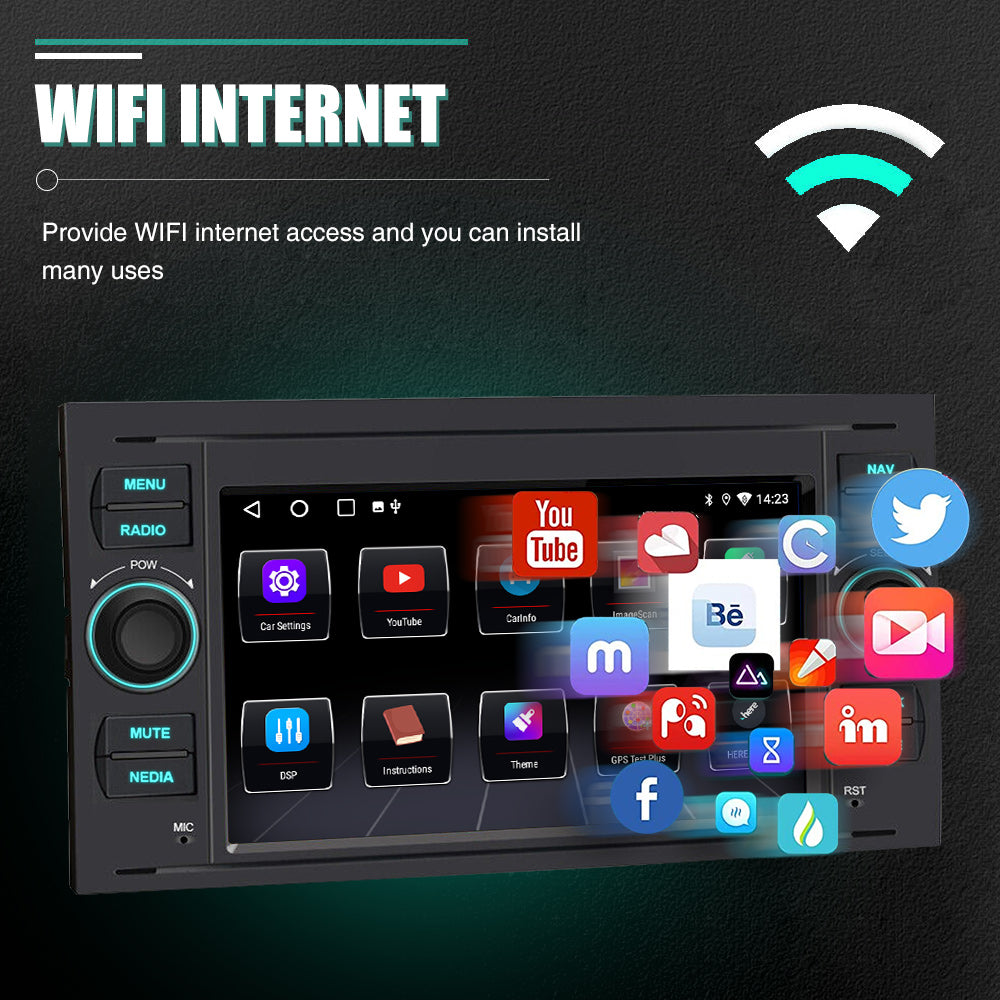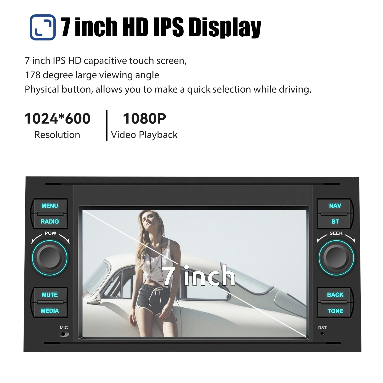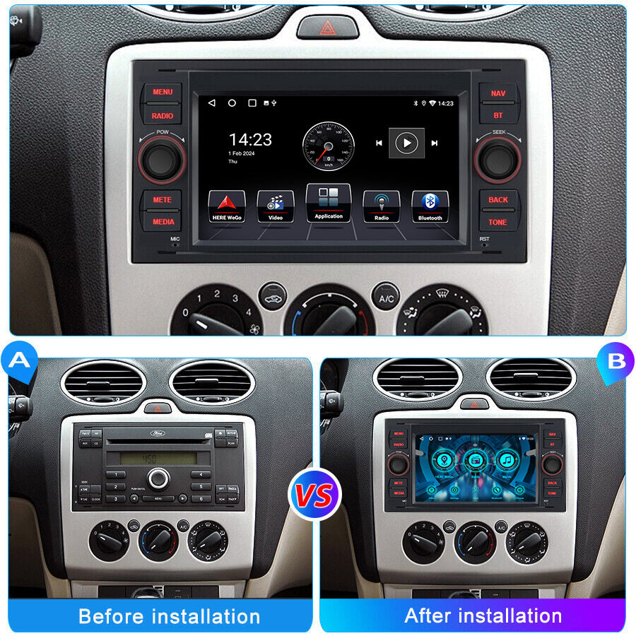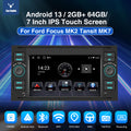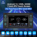 Upgrade your Ford vehicle with the DAB For Ford Transit MK7 Fiesta Fusion Kuga C/S-Max Galaxy Android 13 Car Stereo. This advanced car stereo features a 7-inch HD IPS capacitive touch screen, powered by Android 13, with 2GB RAM and 64GB ROM for seamless app downloads and multimedia playback.