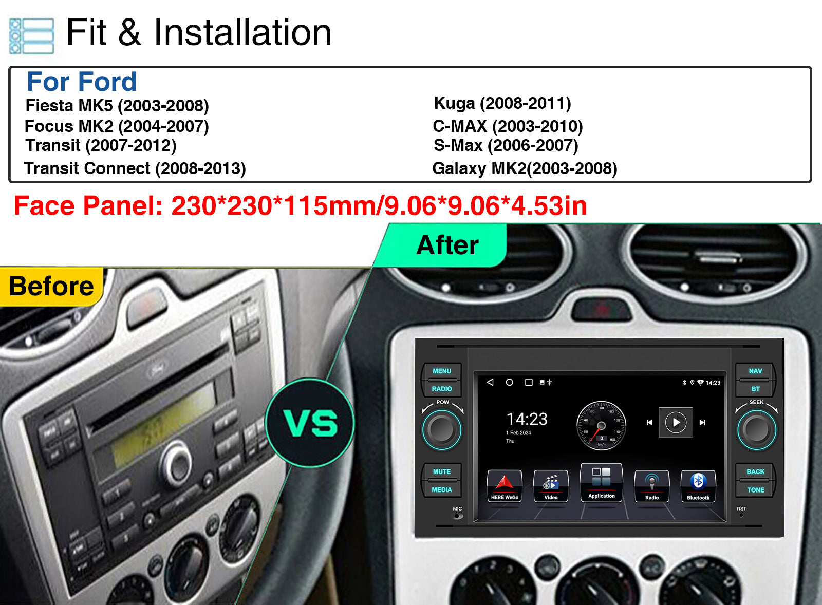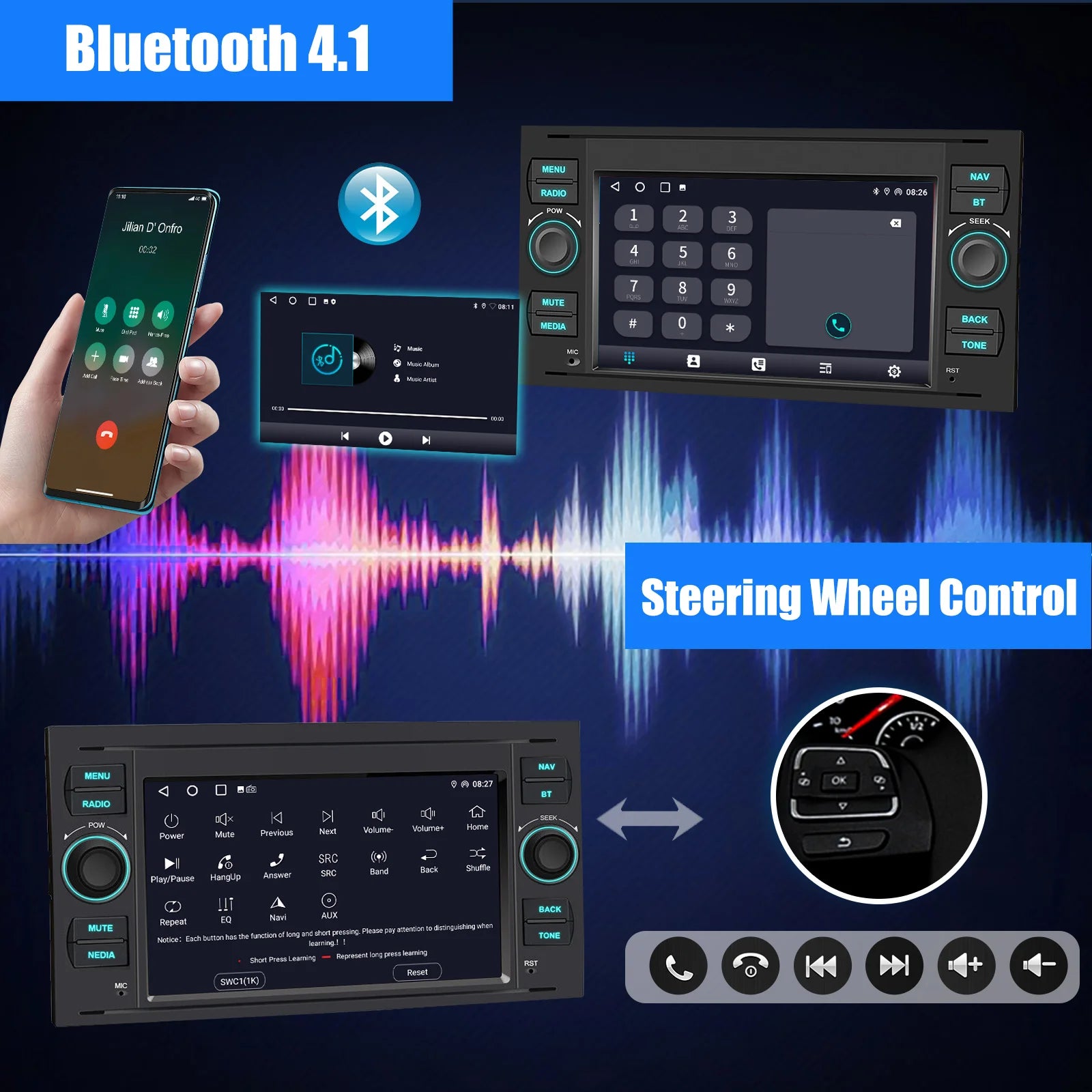 DAB For Ford Transit MK7 Fiesta Fusion Kuga C/S-Max Galaxy Android 13 2+64G Apple Carplay Android Auto Car Stereo GPS WIFI RDS
