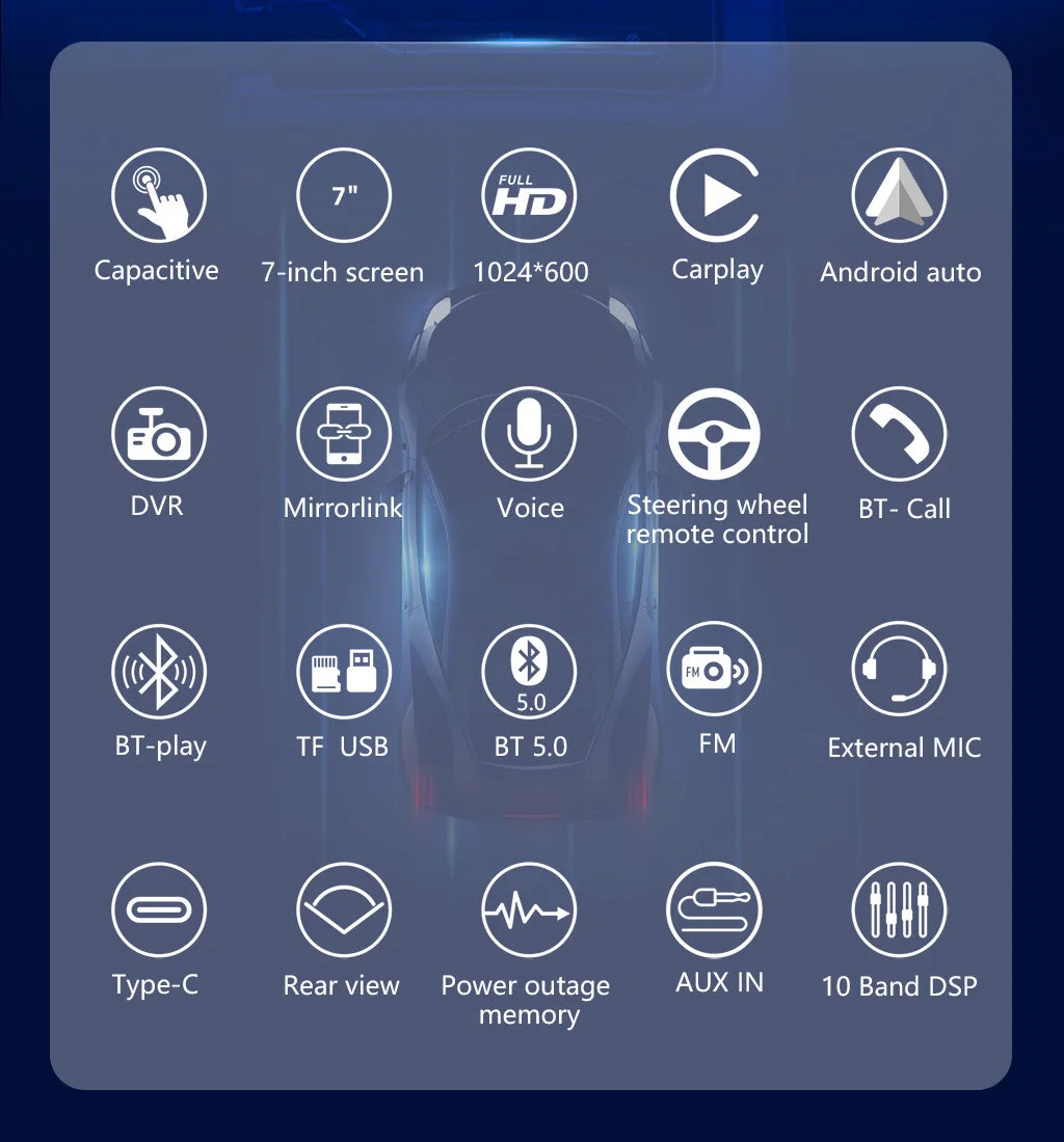 The ESSGOO 7 Inch Wireless Apple Carplay Android Auto Double 2 DIN Car Stereo is a game-changer for your vehicle's infotainment system. Its 7-inch HD touchscreen offers a vibrant display, making navigation and media control effortless.