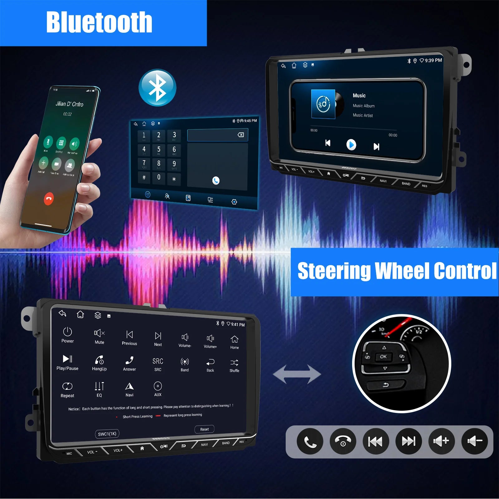 What sets this stereo apart is its compatibility with various VW models, including Golf, Passat, and Tiguan. The stunning 9-inch IPS touchscreen offers vibrant visuals, while features like Apple CarPlay and Android Auto provide effortless connectivity.