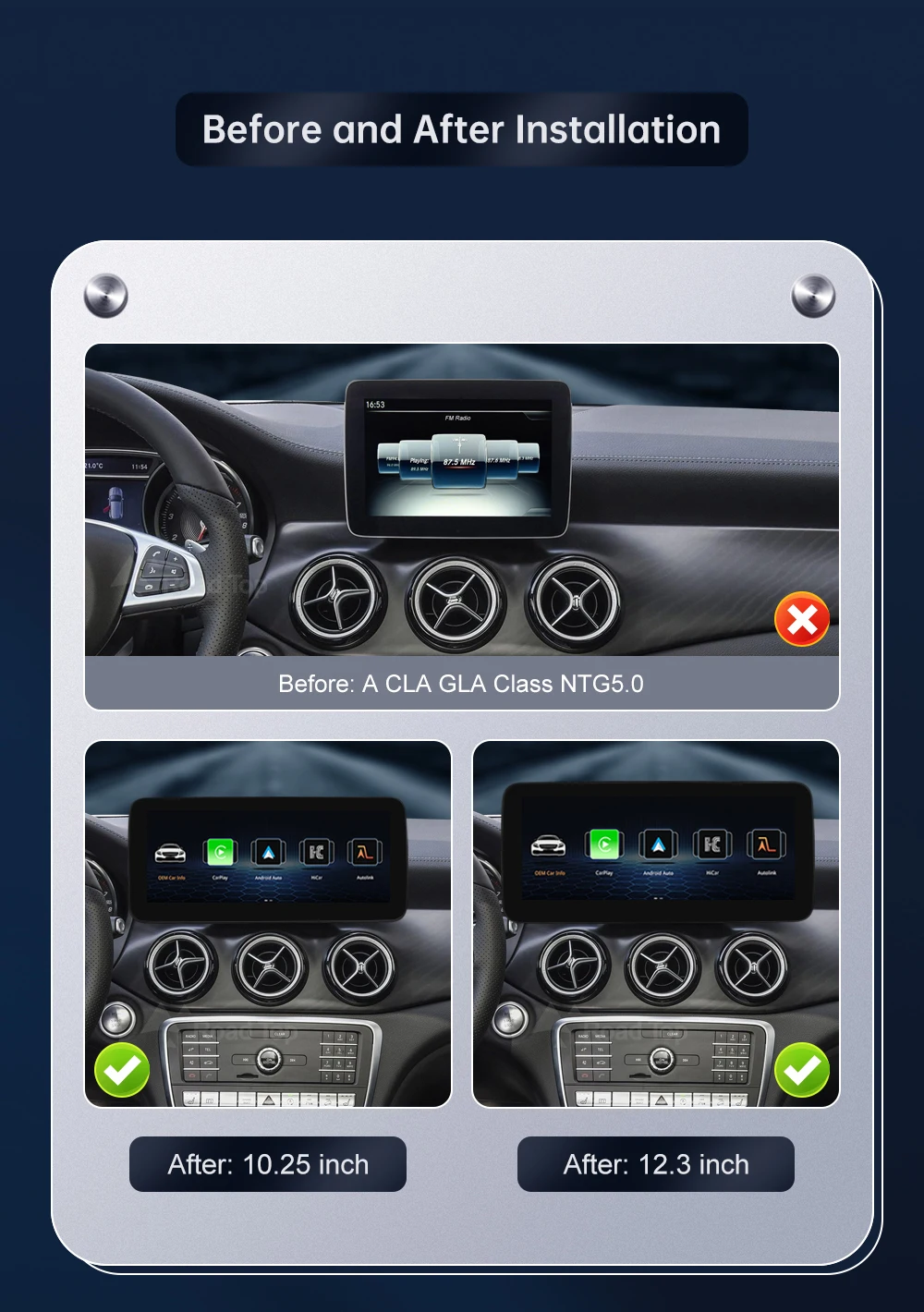 The Multimedia Display for Benz A B CLA GLA 2016-2018 NTG5.0 is a game-changer for your driving experience. This innovative touch screen integrates seamlessly with your vehicle, offering wireless CarPlay and Android Auto capabilities.