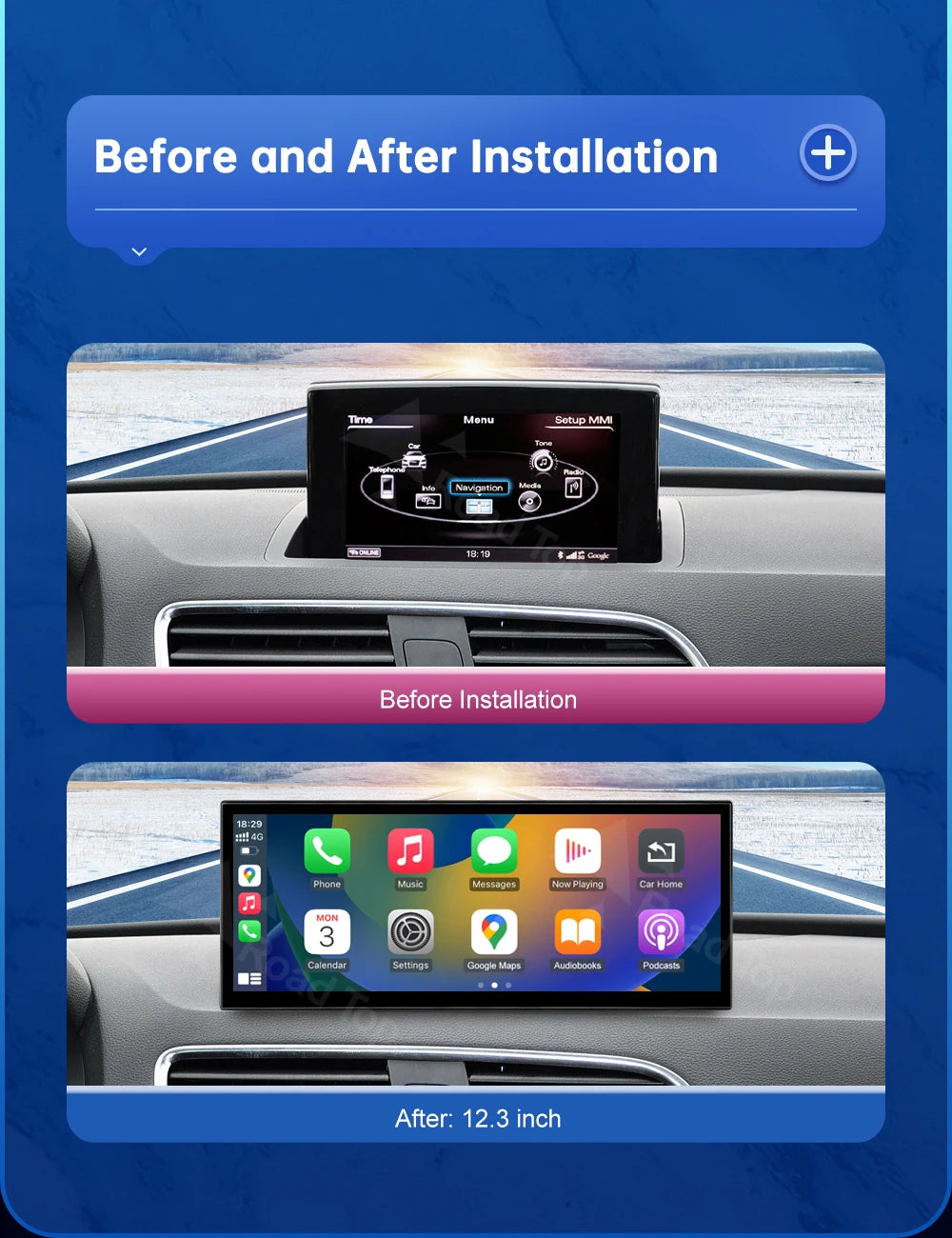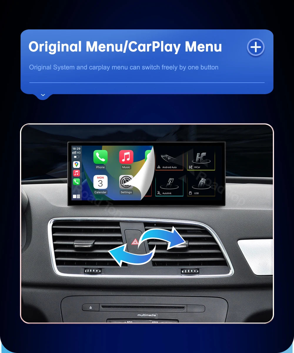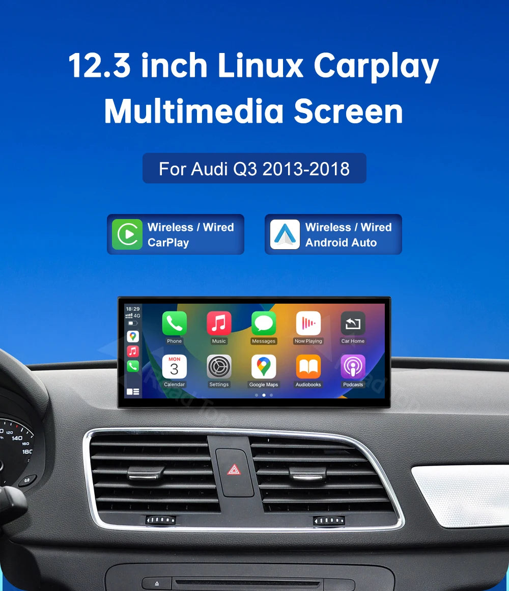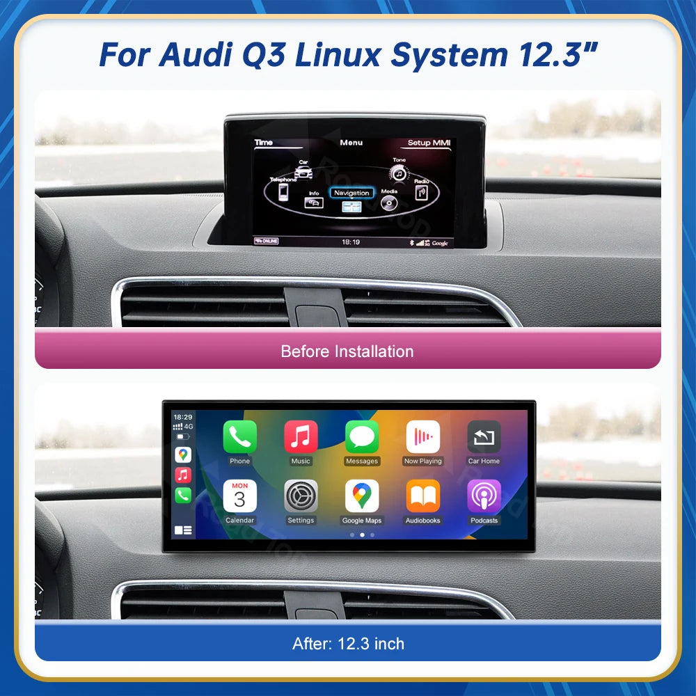 Multimedia Player Road Top 12.3 Inch Touch Display Andriod Auto Link For Audi Q3 2013-2018 GPS Carplay Screen Car Play