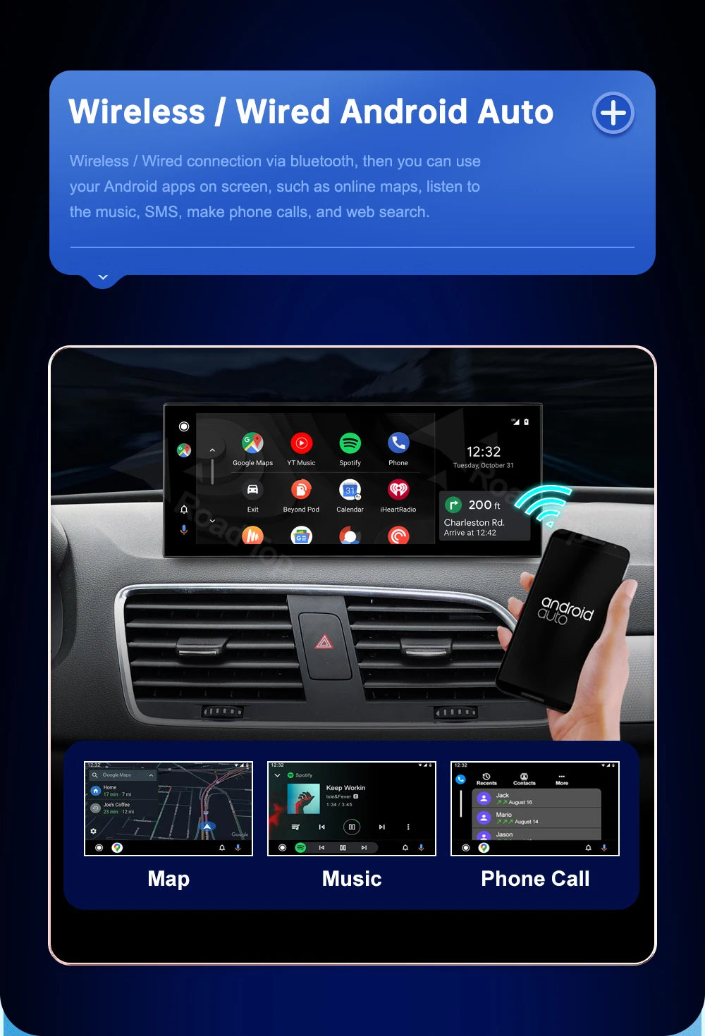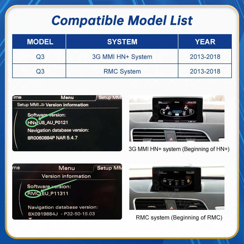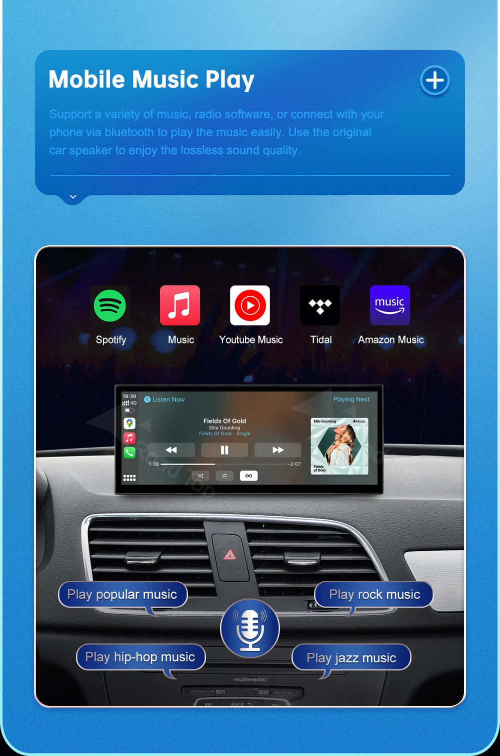 Multimedia Player Road Top 12.3 Inch Touch Display Andriod Auto Link For Audi Q3 2013-2018 GPS Carplay Screen Car Play