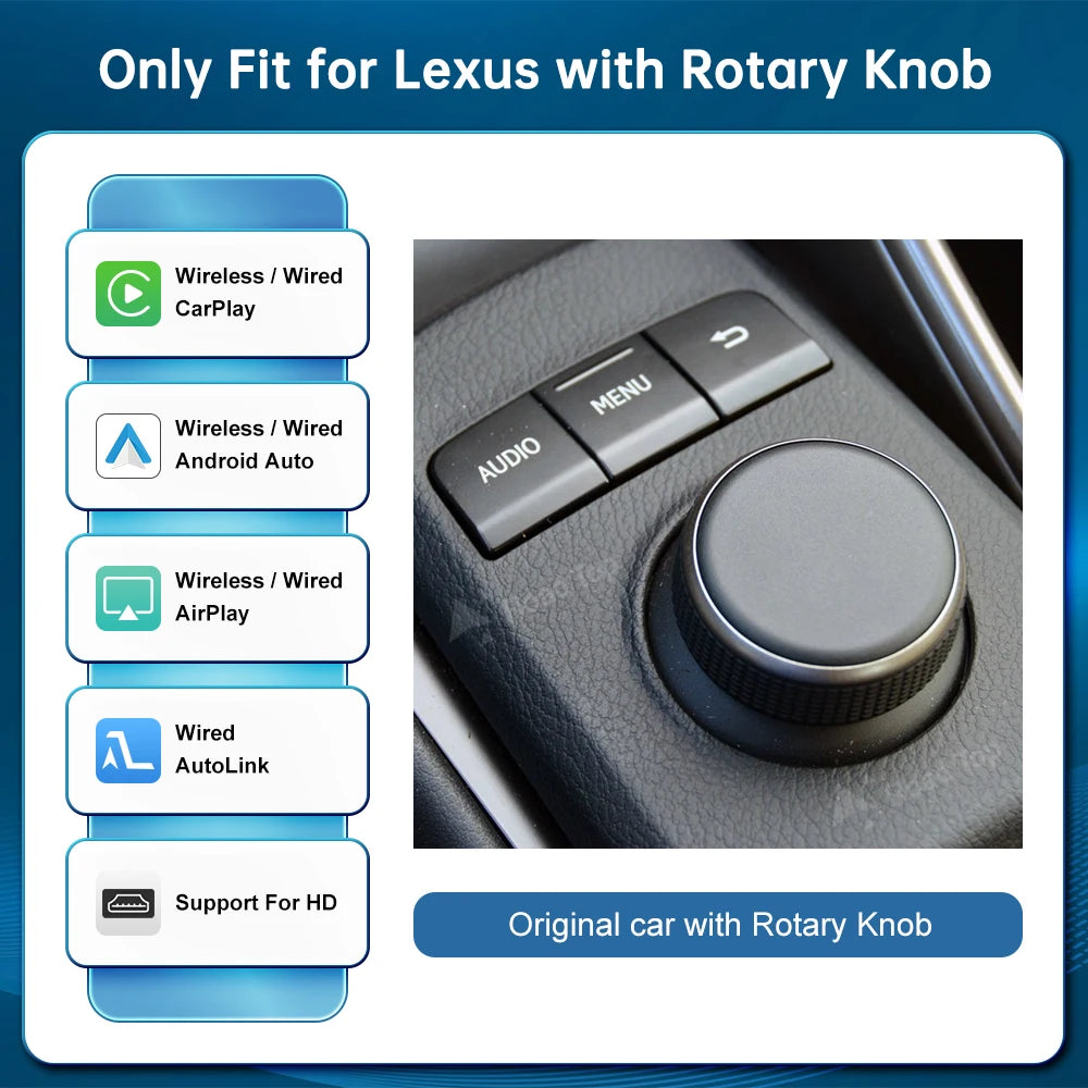 Introducing the Wireless CarPlay Android Auto for Lexus models (2014-2019), a unique solution that transforms your driving experience. This innovative device seamlessly integrates with your existing head unit, allowing you to enjoy wireless Apple CarPlay and Android Auto functionalities.