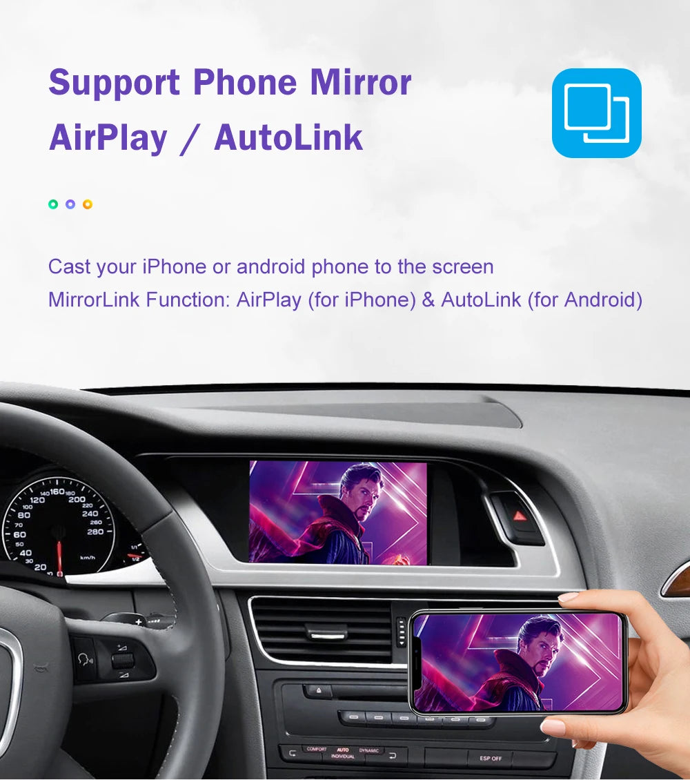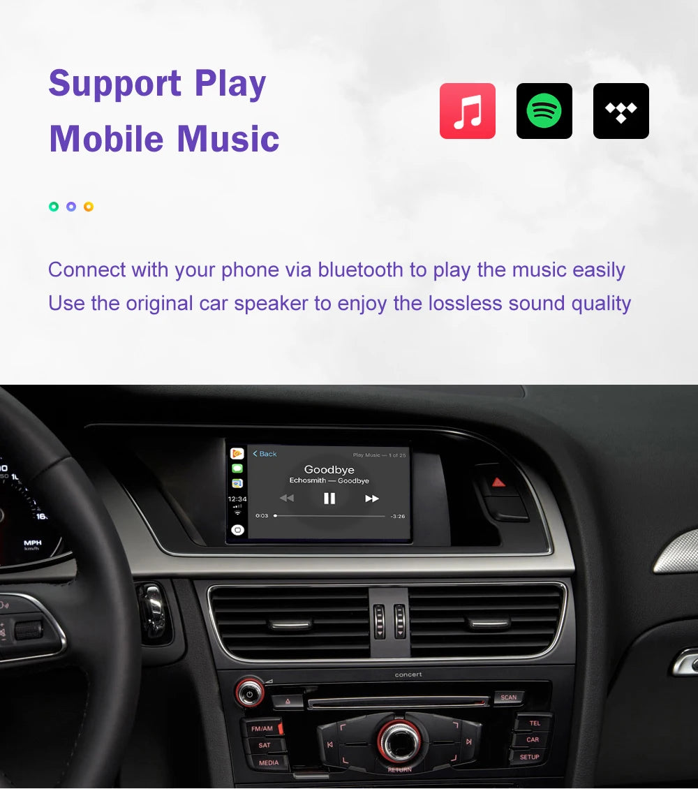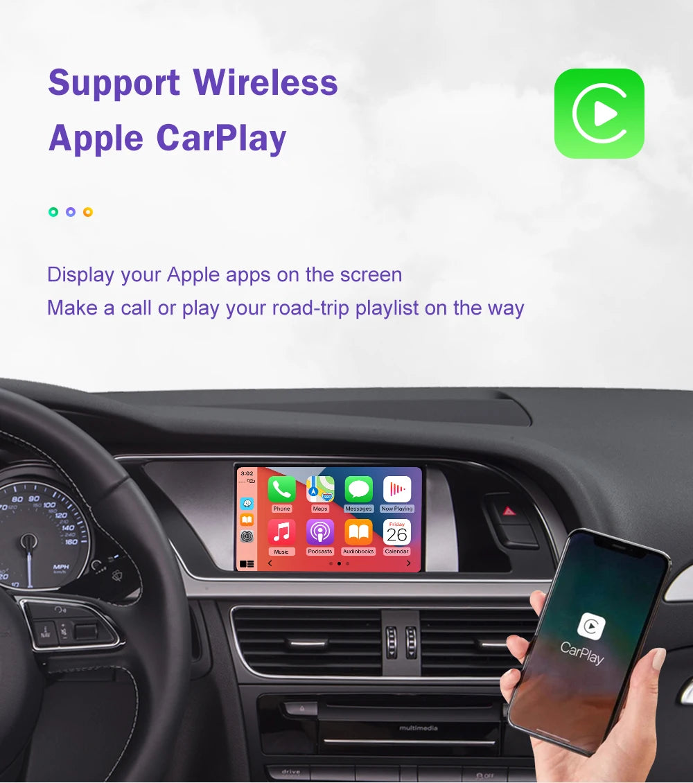 Wireless Carplay for Audi A4 B8 A5 Q5 2009-2015, Support Apple Carplay Android Auto AirPlay Mirroring Rear Camera USB Player