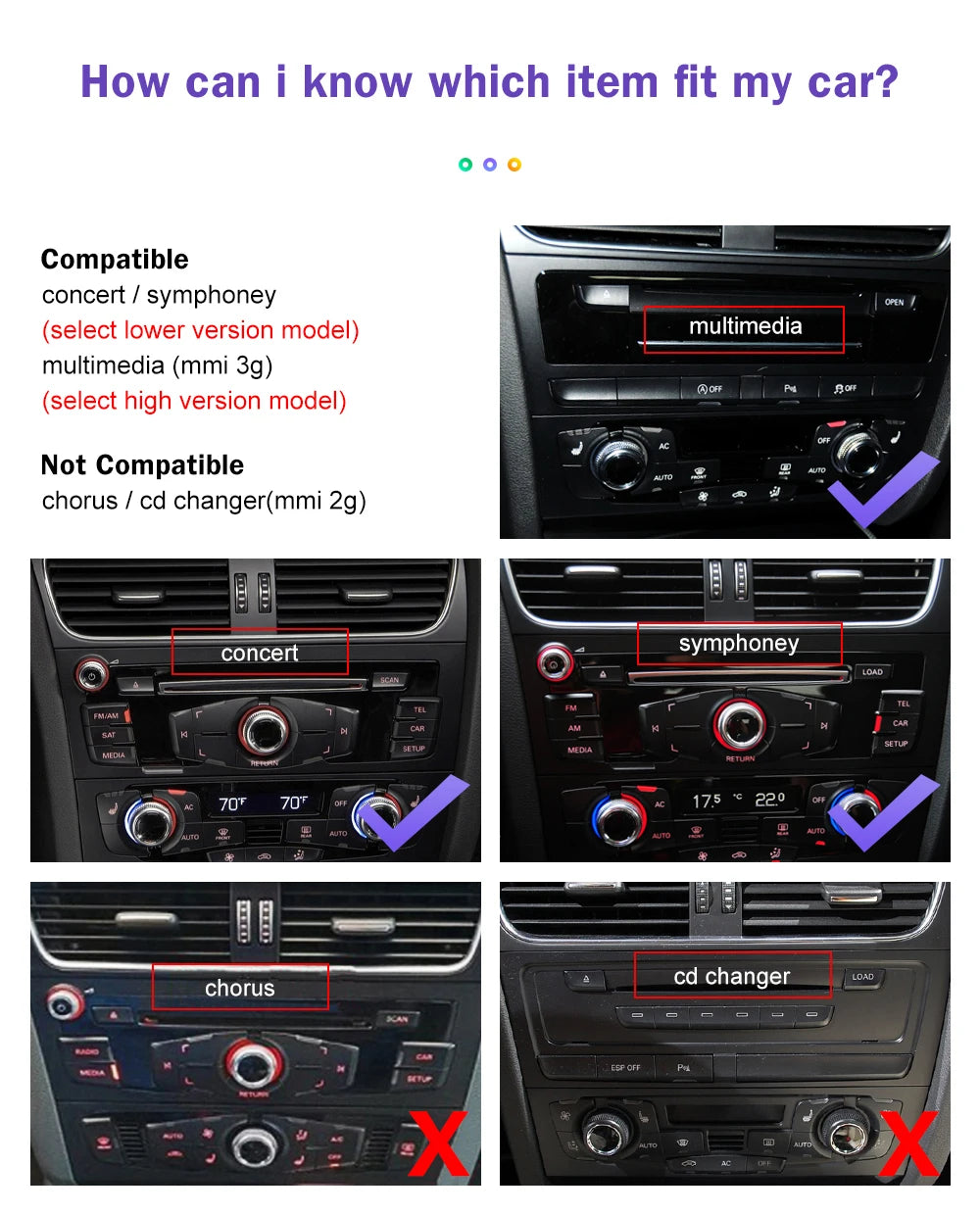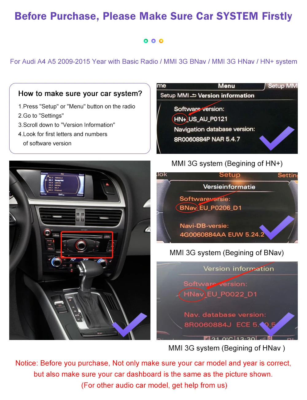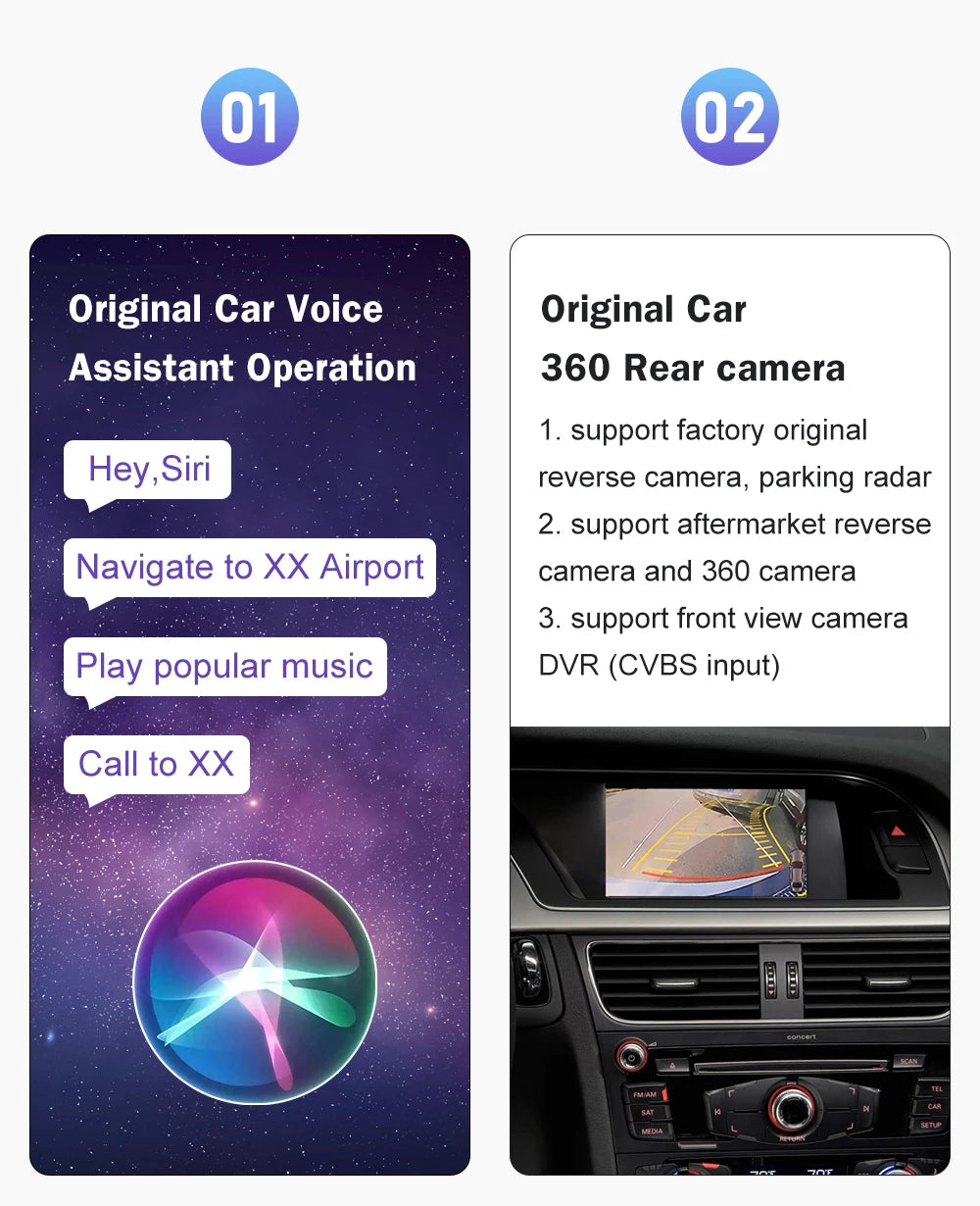Wireless Carplay for Audi A4 B8 A5 Q5 2009-2015, Support Apple Carplay Android Auto AirPlay Mirroring Rear Camera USB Player